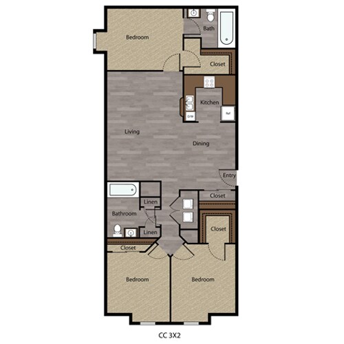 3 Dormitorios, 2 Baños, 1272 pies²Galería del Modelo