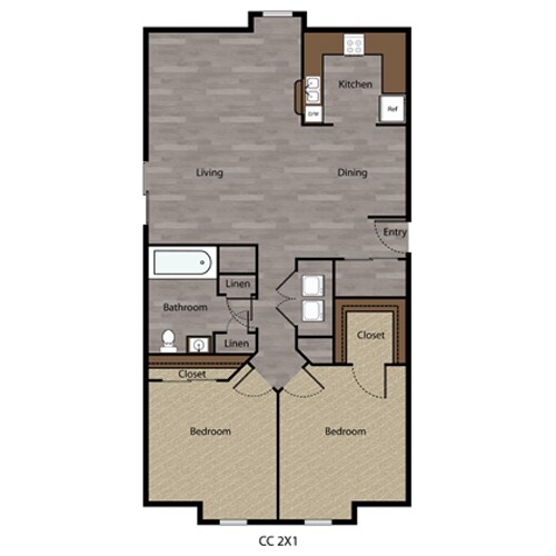 Modelo de apartamento: 2 Bed, 1 Bath - 1032 SF$1,3352 Dormitorios, 1 Baño, 1032 sq ftNo Disponible![]()