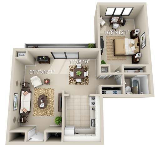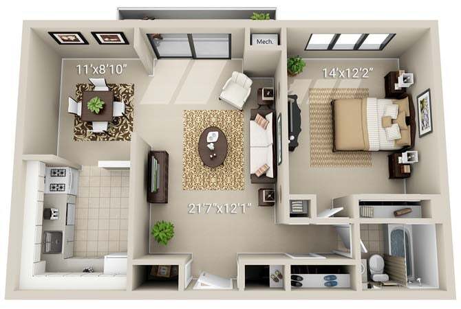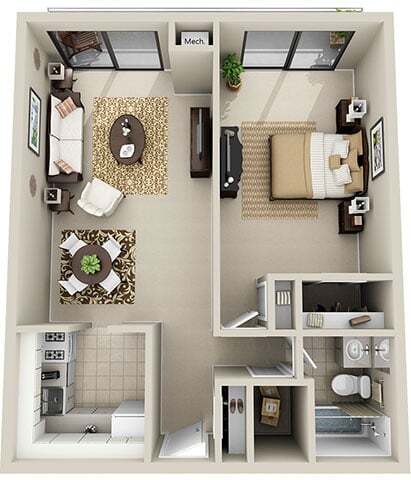 1 Dormitorio, 1 Baño, 722 pies²Disponible AhoraGalería del Modelo