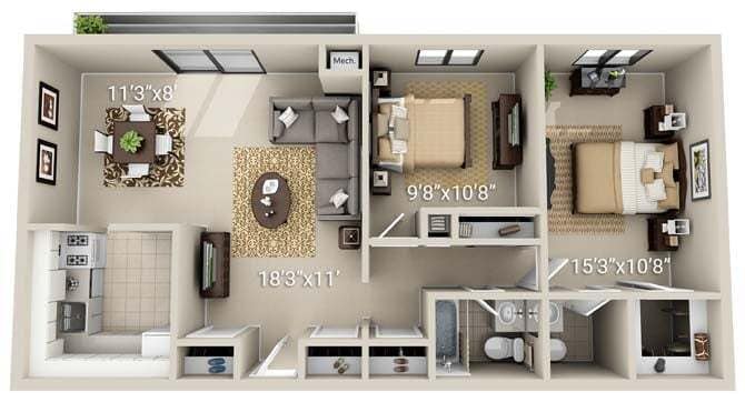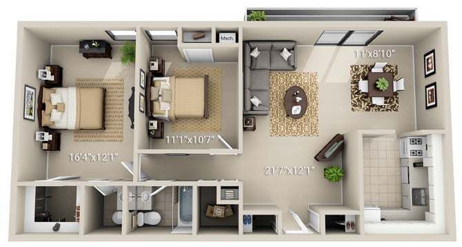 2 Dormitorios, 2 Baños, 1191-1200 pies²Disponible AhoraEl más grandeEsta opción tiene las unidades más grandes para este modeloGalería del Modelo