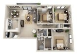 Modelo de apartamento: 3BR/2.0BA$1,6043 Dormitorios, 2 Baños, 1276 sq ftDisponible Ahora![]()
