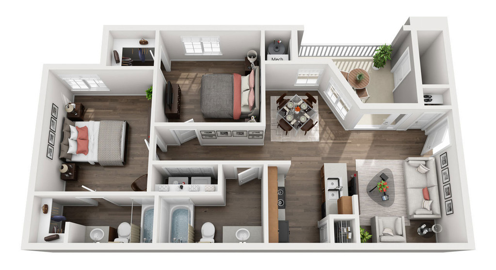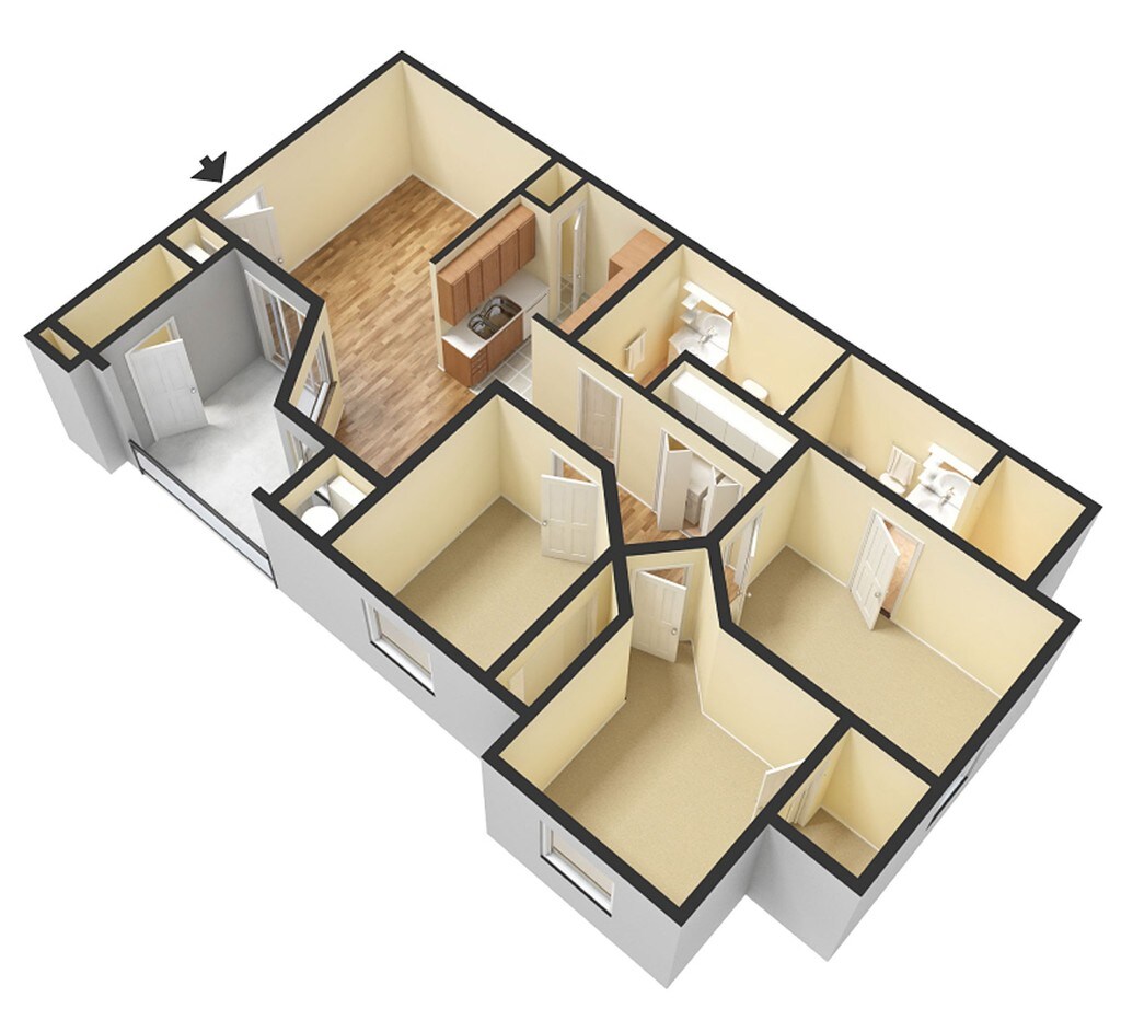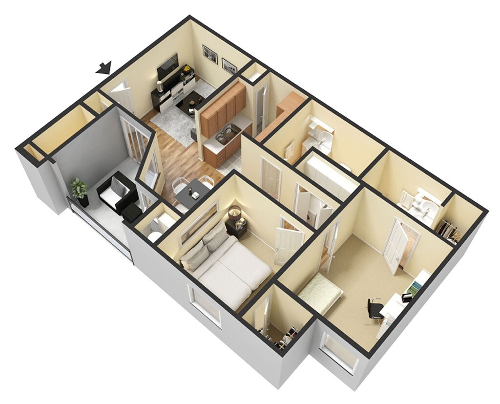 2 Dormitorios, 1 Baño, 866 pies²Disponible AhoraGalería del Modelo