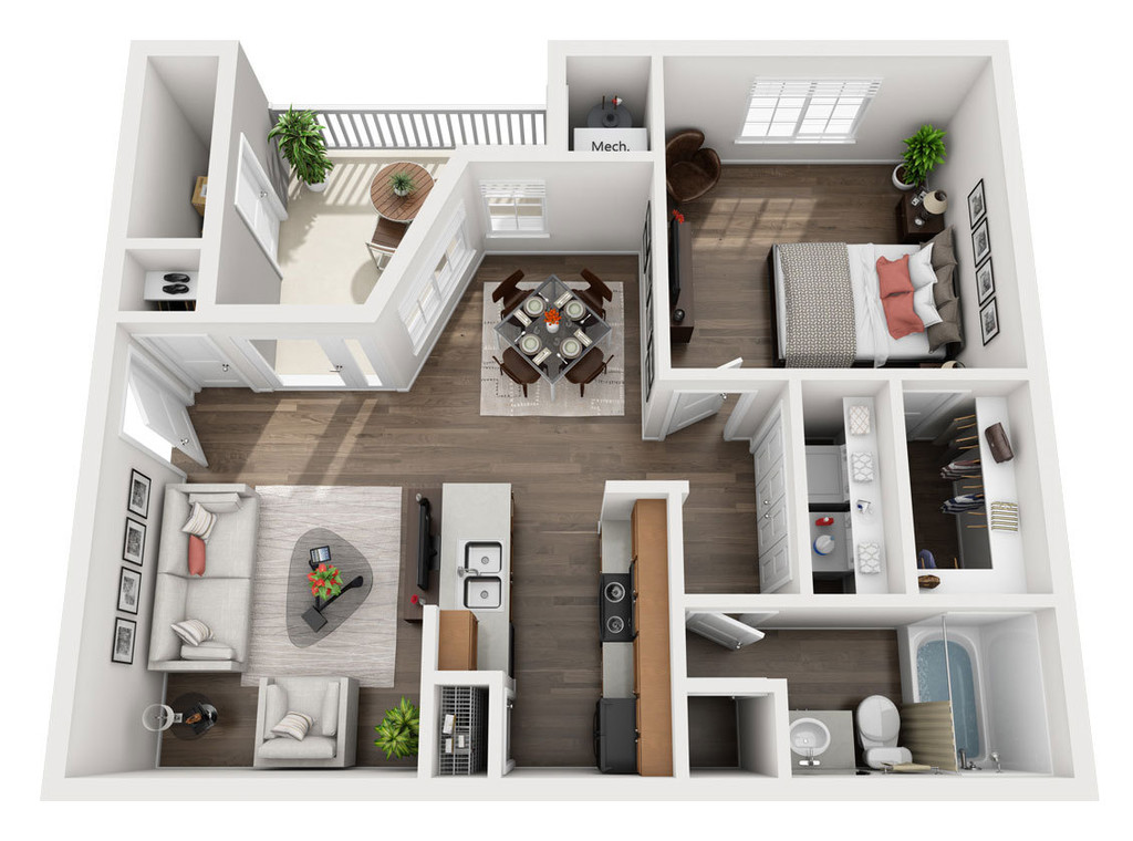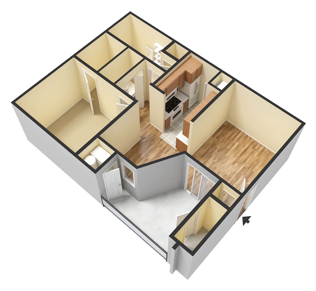 1 Dormitorio, 1 Baño, 690 pies²Disponible AhoraGalería del Modelo