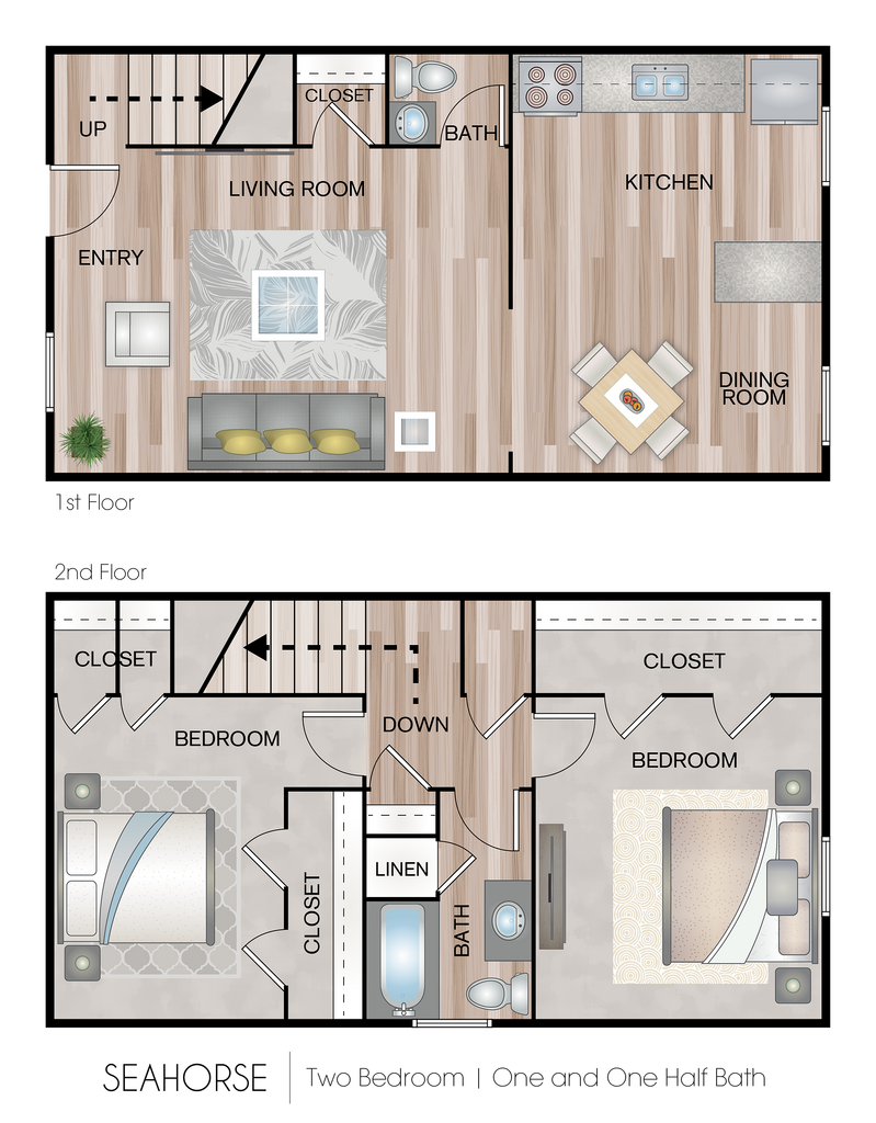 Modelo de apartamento: 2b$1,2502 Dormitorios, 1.5 Baños, 1150 sq ftNo Disponible![]()