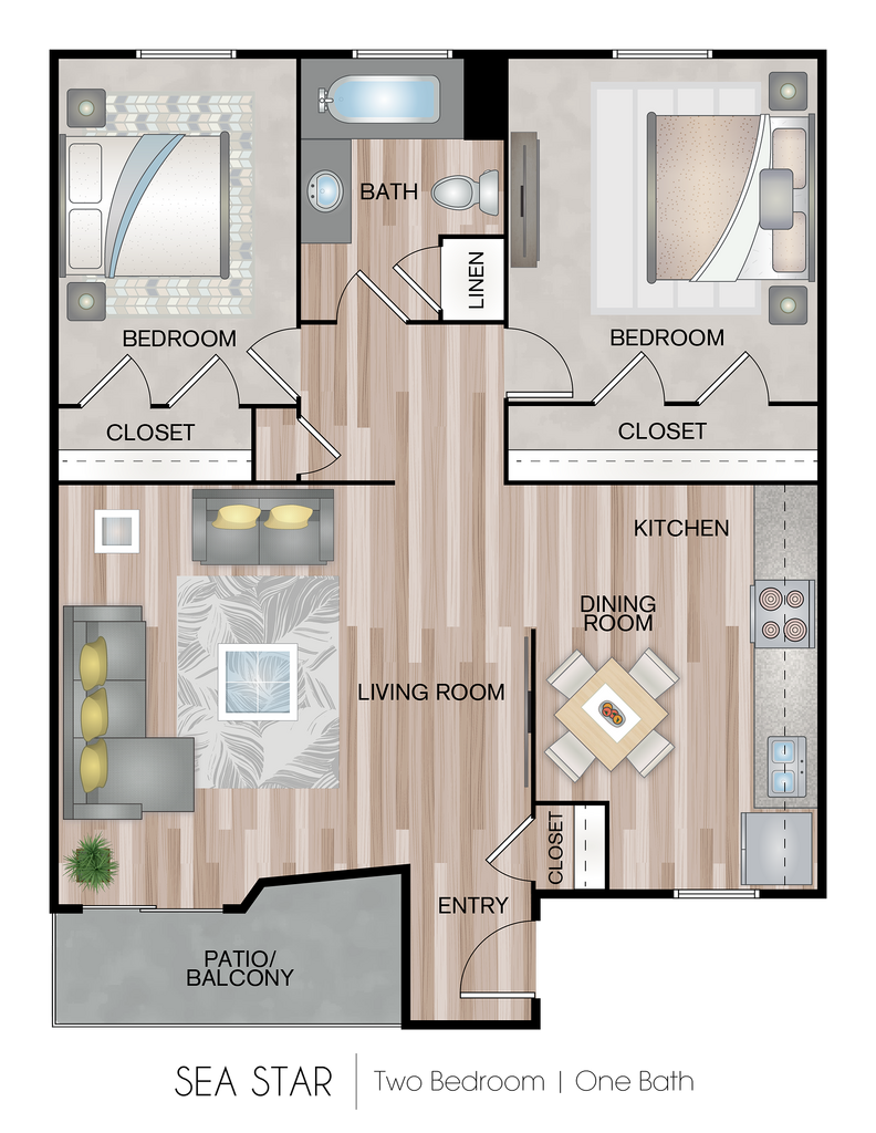 1 Dormitorio, 1 Baño, 850 pies²Disponible AhoraGalería del Modelo