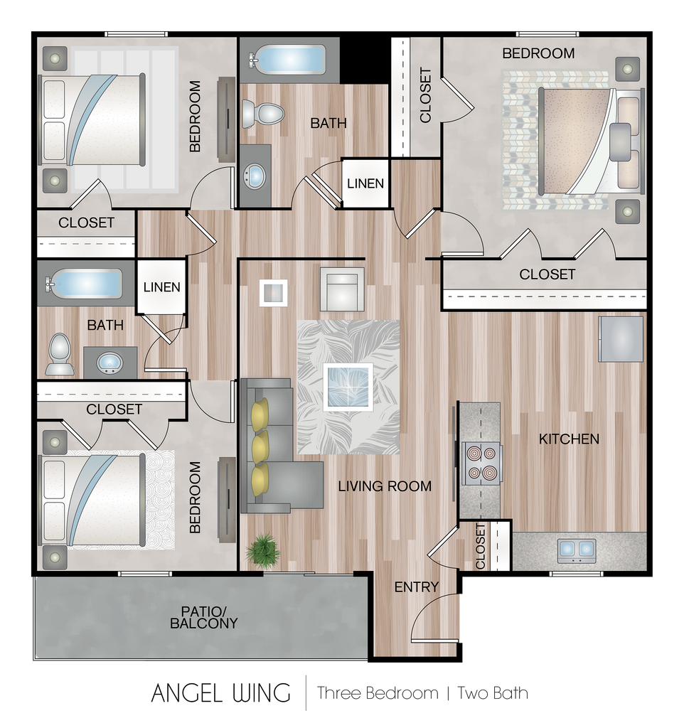Modelo de apartamento: 3a$1,4003 Dormitorios, 2 Baños, 1350 sq ftNo Disponible![]()