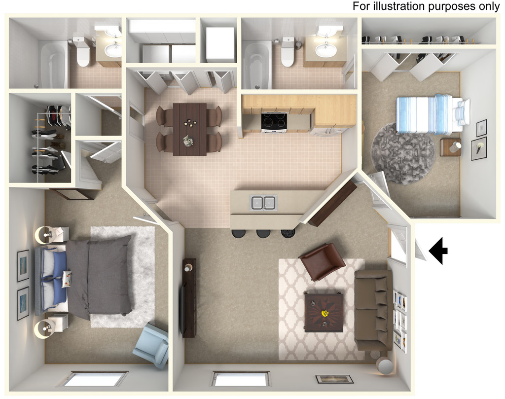 Modelo de apartamento: 2BR-3Desde $1,4502 Dormitorios, 2 Baños, 1001 sq ftDisponible AhoraPlanosFotos![]()