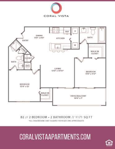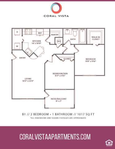 Coral Vista ofrece apartamentos de 1 a 3 Dormitorios desde $2,027 con 800–1,508 pies cuadrados. Aquí está el precio actual y la disponibilidad: