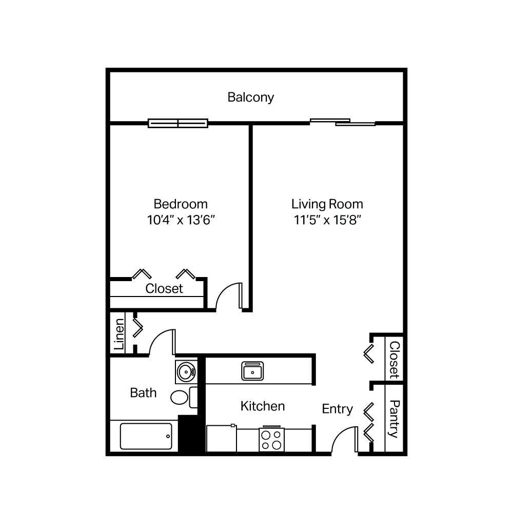 Modelo de apartamento: Senior Income-Based 1 Bedroom1 Dormitorio, 1 Baño, 555 sq ftDisponible AhoraPlanosFotos![]()