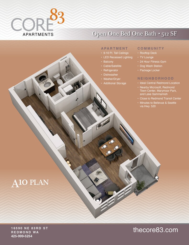 Core 83 Apartments se encuentran en 16590 NE 83rd St cerca de la zona Downtown Redmond en Redmond, WA
