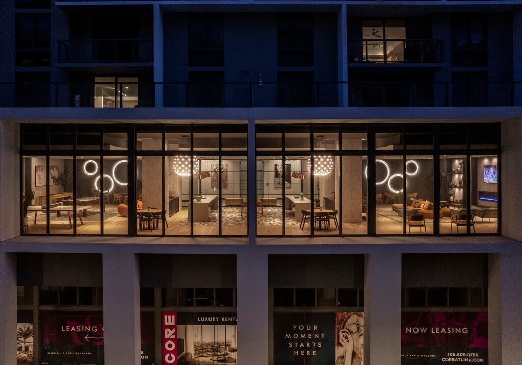 Bienvenido a Core at Link, donde la lujosa vida de altura se cruza con la mejor ubicación de Miami. Con vistas impresionantes, amenidades frescas y una comunidad conectada con todo, nuestras residencias están cuidadosamente diseñadas para una experiencia de vida excepcional. Nuestras residencias cuentan con interiores luminosos y espaciosos, con pisos y acabados de lujo, diseños adaptables, ventanas del piso al techo e impresionantes balcones con vistas impresionantes. Entreténgase con estilo en nuestras cocinas de concepto abierto, equipadas con electrodomésticos modernos, encimeras de granito, gabinetes y estantes personalizados, junto con islas móviles que brindan espacio flexible para preparar comidas y cenar. Con balcones que ofrecen vistas panorámicas, techos de 2,5 metros y mucho espacio de almacenamiento, nuestros apartamentos son la opción perfecta para aquellos que buscan una experiencia de vida excepcional. Nuestros espacios de servicios seleccionados son de lujo de primer nivel: un oasis en la piscina de la azotea, un espacio de ejercicio lleno de luz y sofisticados lounges sociales y de negocios.