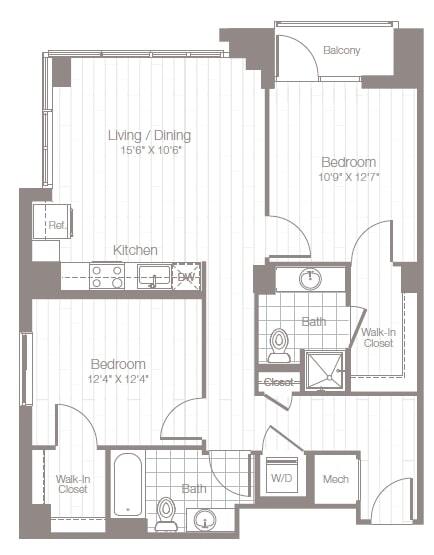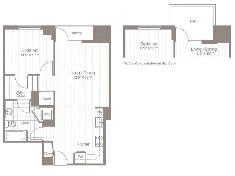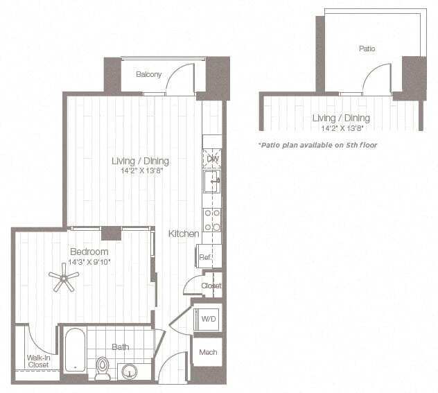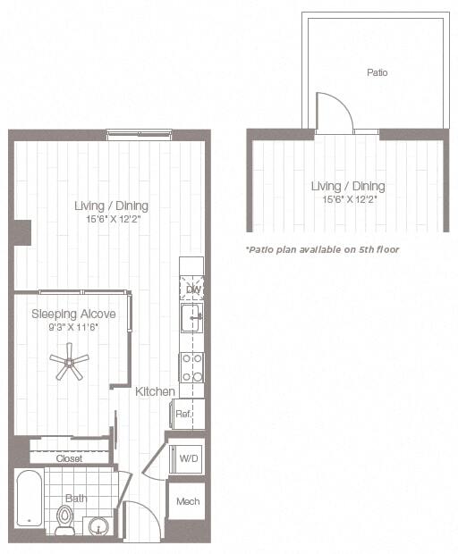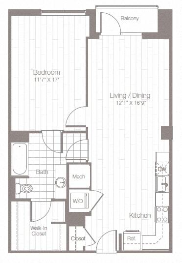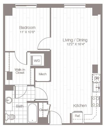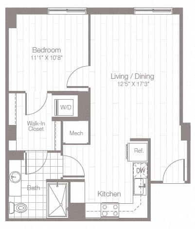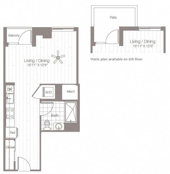 Estudio, 1 Baño, 523 pies²Disponible AhoraGalería del Modelo