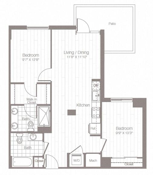 Modelo de apartamento: S2Desde $1,518Estudio, 1 Baño, 470 sq ftDisponible Ahora![]()