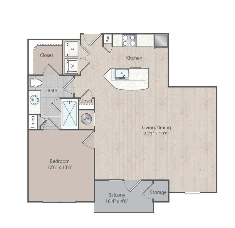 Modelo de apartamento: A3ADesde $1,3891 Dormitorio, 1 Baño, 690 sq ftDisponible Ahora![]()