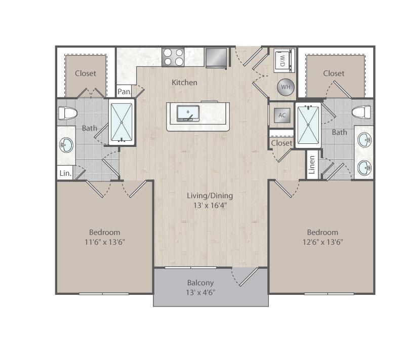 Modelo de apartamento: A2Desde $1,4011 Dormitorio, 1 Baño, 639 sq ftDisponible Ahora![]()