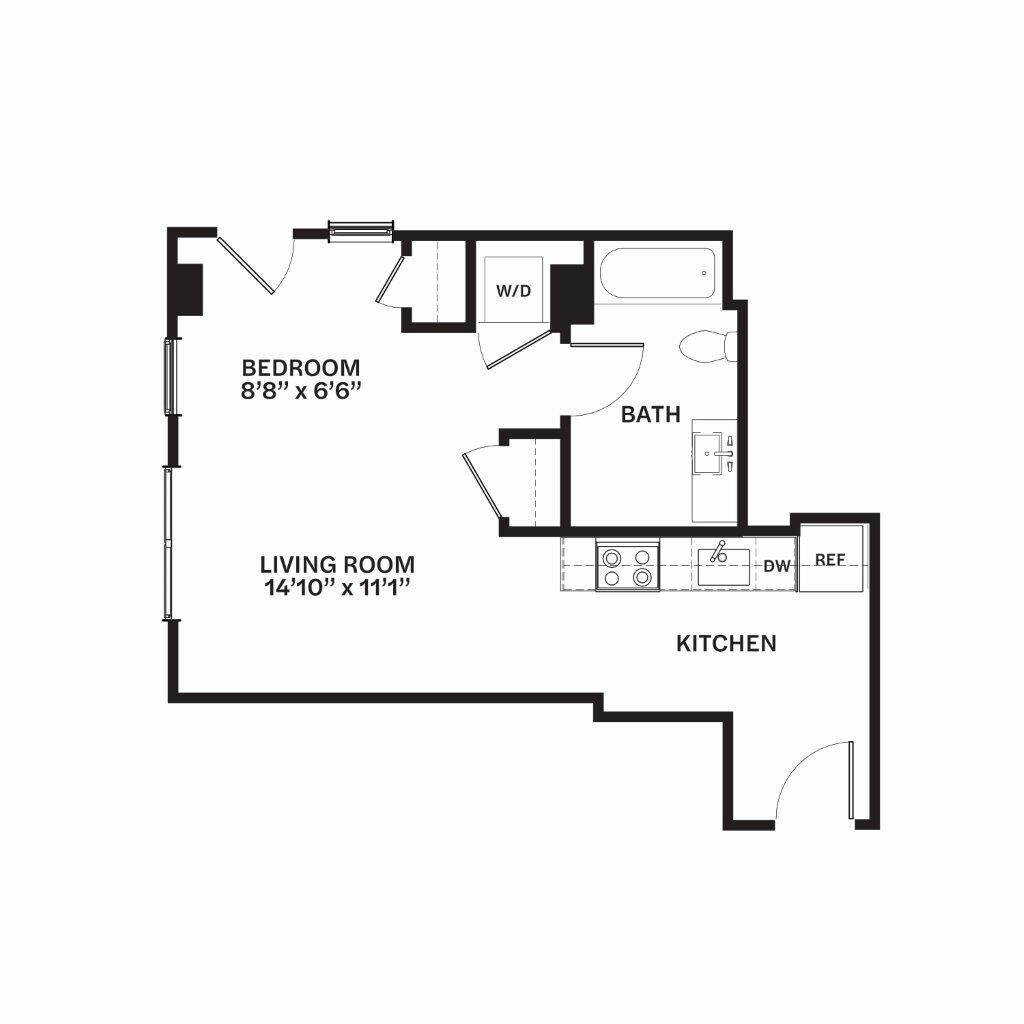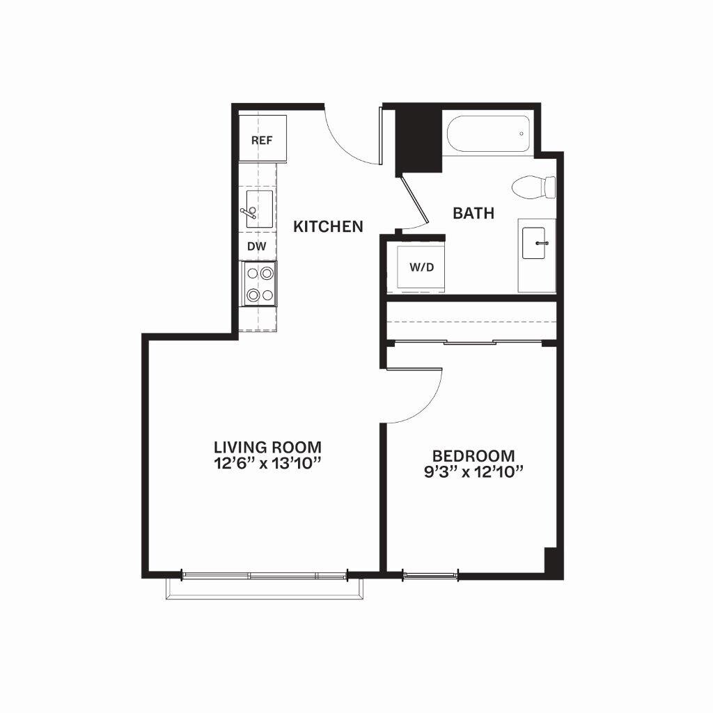 Modelo de apartamento: C6$2,5401 Dormitorio, 1 Baño, 537 sq ftDisponible Ahora![]()