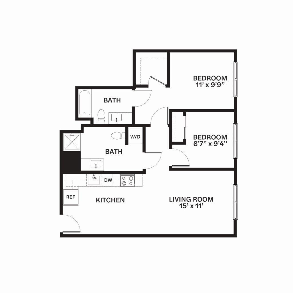Modelo de apartamento: C21Desde $2,7451 Dormitorio, 1 Baño, 639 sq ftDisponible Ahora![]()