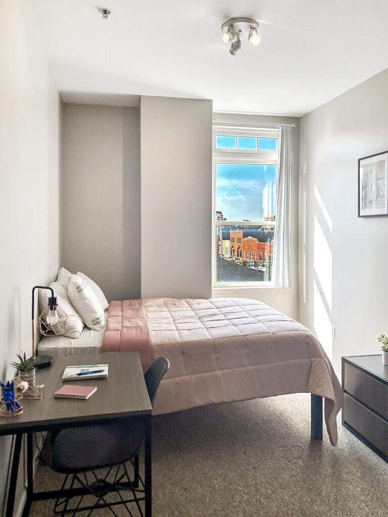 July 20, 2015I give this apartment building a 4/5 because of mainly the location and the modern style of the apartments. I've found so far that Ann Arbor's monthly rent is pretty pricey compared to other college towns and cities, but this apartment is in such a prime location it's insane! The apartments are a little on the more compact side for the rent price but the location right at State and Washington trumps the apartment space. It is so close to all city sites, shops, bars, etc. It makes being a college ...student so easy.Leer MásReseña de Apartments.com