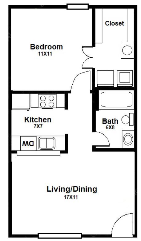 1 Dormitorio, 1 Baño, 580-700 pies²Disponible AhoraGalería del Modelo