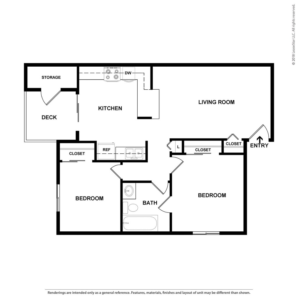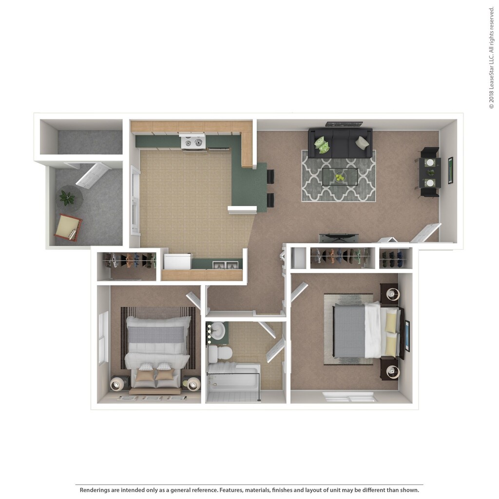 2 Dormitorios, 1 Baño, 839 pies²Disponible Oct 16Galería del Modelo