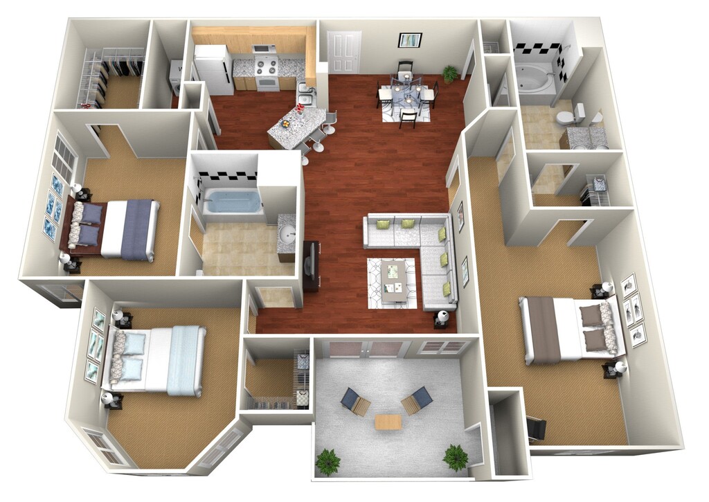Modelo de apartamento: C13 Dormitorios, 2 Baños, 1256 sq ftDisponible Ahora![]()