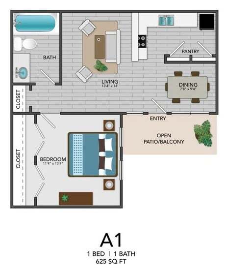Modelo de apartamento: A1Desde $1,1851 Dormitorio, 1 Baño, 625 sq ftDisponible December 1, 2025![]()