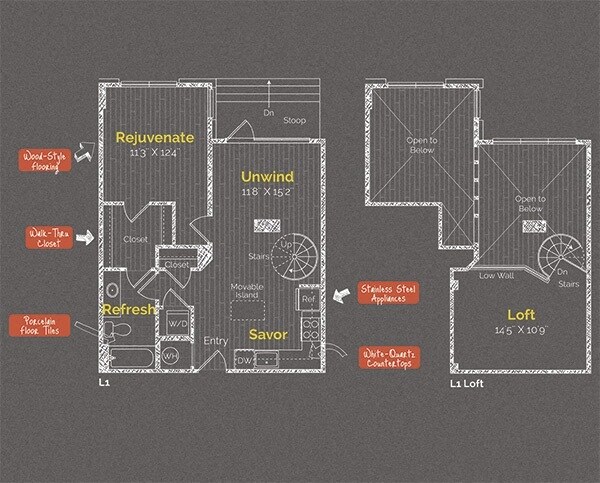 Fecha Disponibilidad Unidad Pies² Llamar para disponibilidad Studio/ Loft - S1AL 751 pies² Características y Comodidades de Modelo