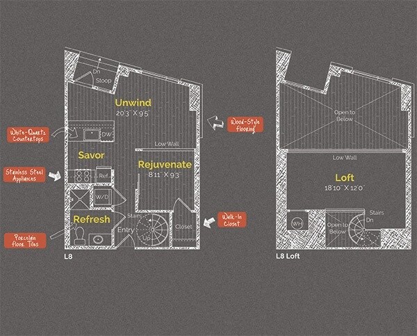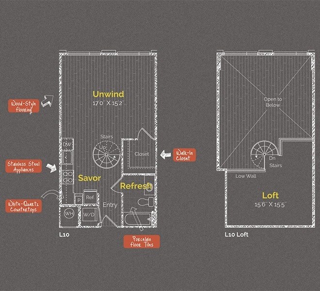 Fecha Disponibilidad Unidad Pies² Llamar para disponibilidad Studio/Loft - S1DL 834 pies² Características y Comodidades de Modelo