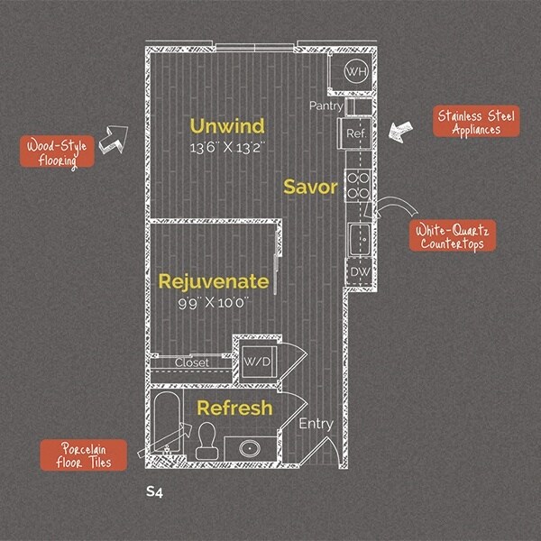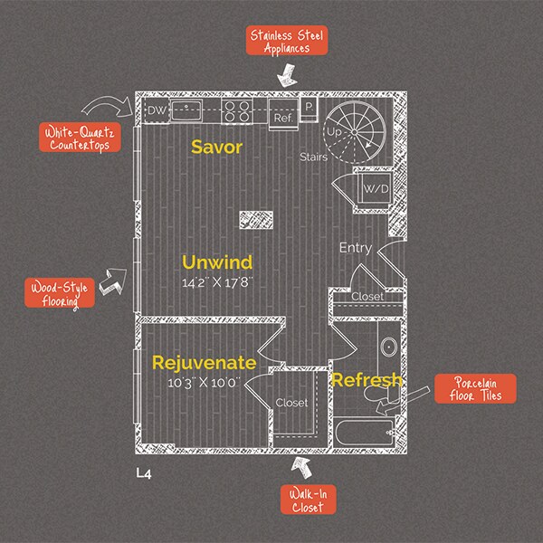 Modelo de apartamento: Studio - S1ELlame para PreciosEstudio, 1 Baño, 587 sq ftDisponible Ahora![]()