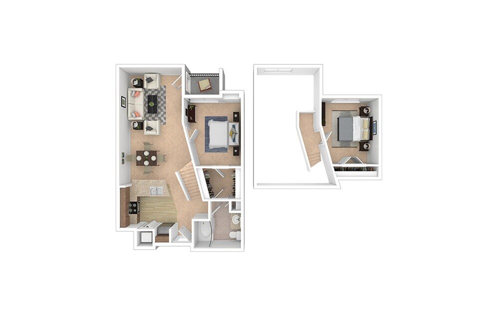1 Dormitorio, 1 Baño, 745 pies²Disponible AhoraGalería del Modelo