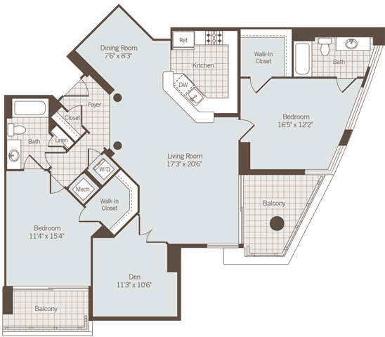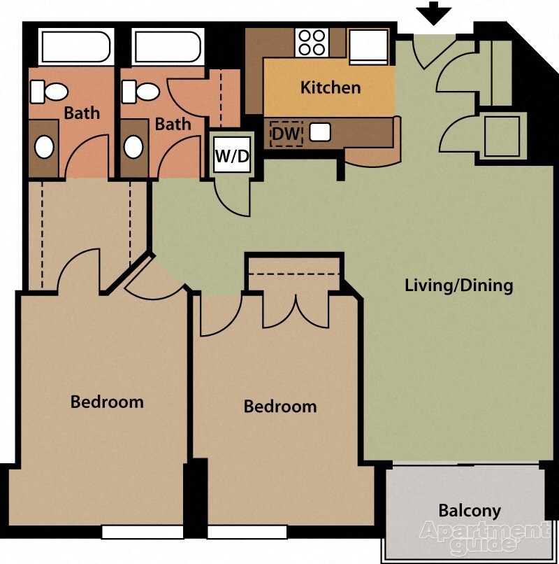 Modelo de apartamento: 1 Bed/1 Bath - A1BLlame para Precios1 Dormitorio, 1 Baño, 688 sq ftNo Disponible![]()