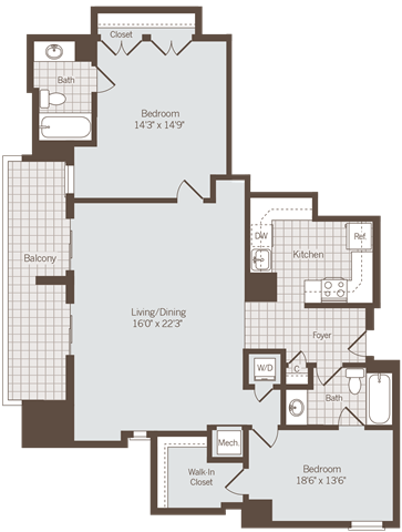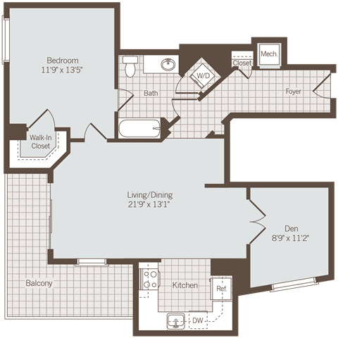 1 Bed/1 Bath - A1E - Plano 1 Unidad de apartamento: W0702Modelo de apartamento: 1 Bed/1 Bath - A1ELlame para Precios1 Dormitorio, 1 Baño, 722 sq ftDisponible December 29, 20251 Bed/1 Bath - A1B