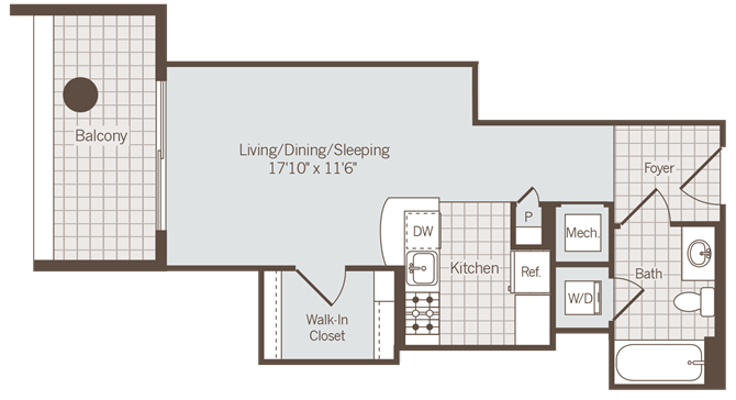 Modelo de apartamento: Studio - S1DLlame para PreciosEstudio, 1 Baño, 517 sq ftDisponible Ahora![]()