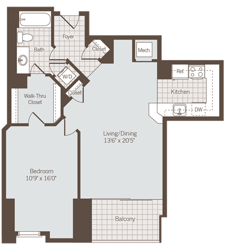 1 Dormitorio, 1 Baño, 749 pies²Disponible AhoraGalería del Modelo