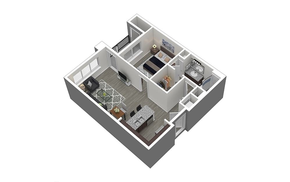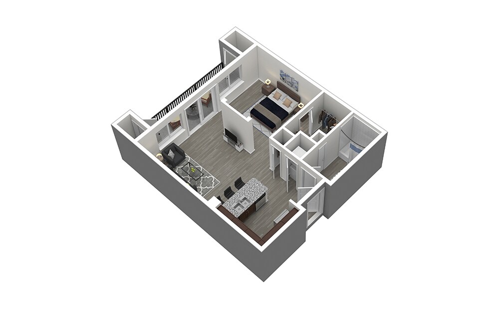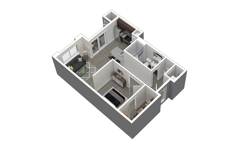 Aloe - Plano 1 Unidad de apartamento: 1041Modelo de apartamento: AloeEstudio, 1 Baño, 645 sq ftDisponible AhoraAgave