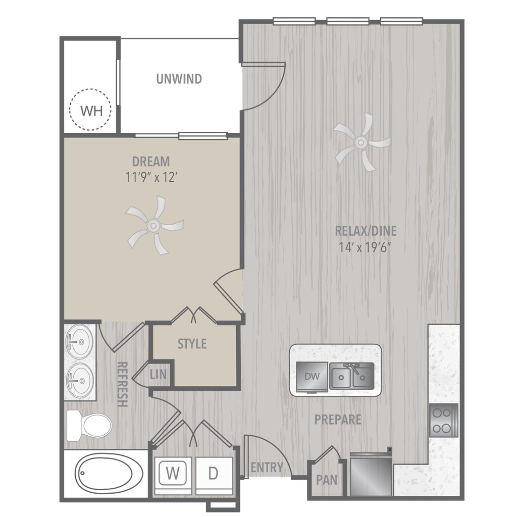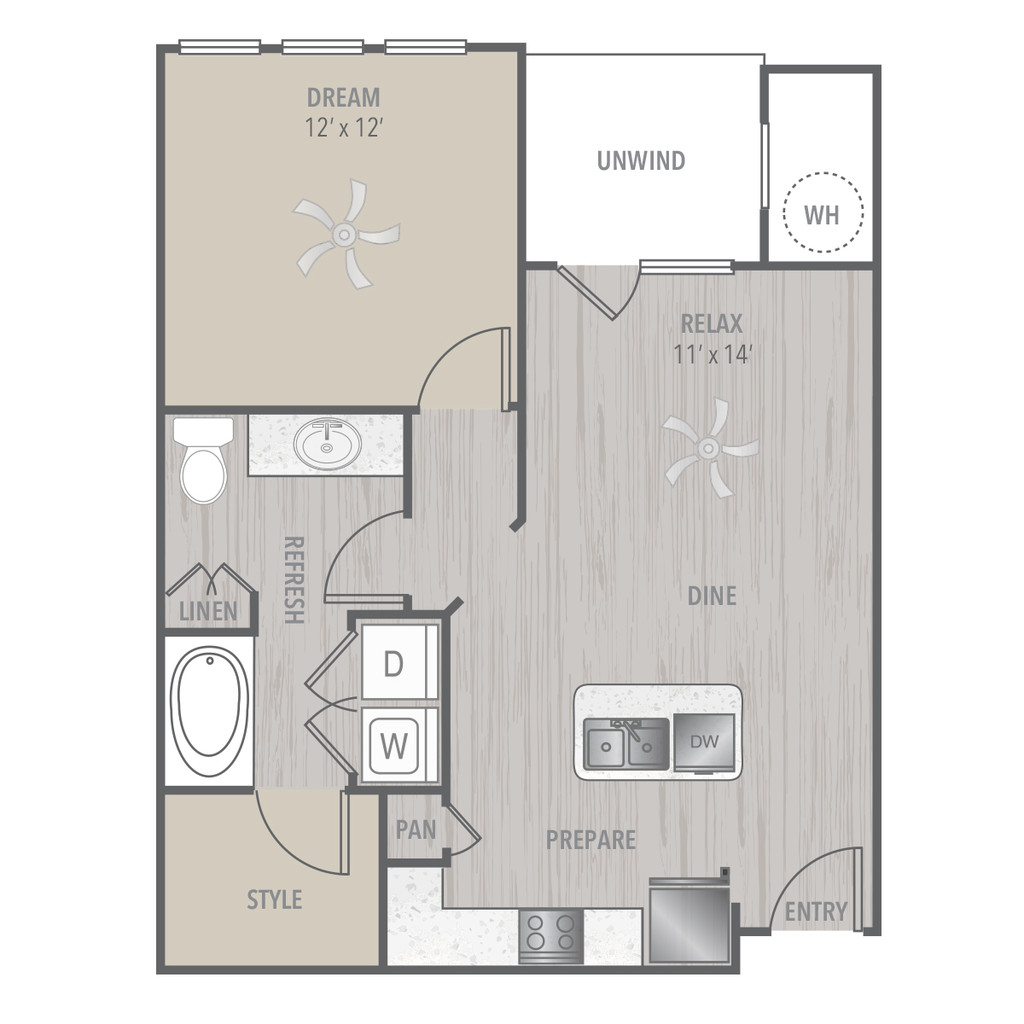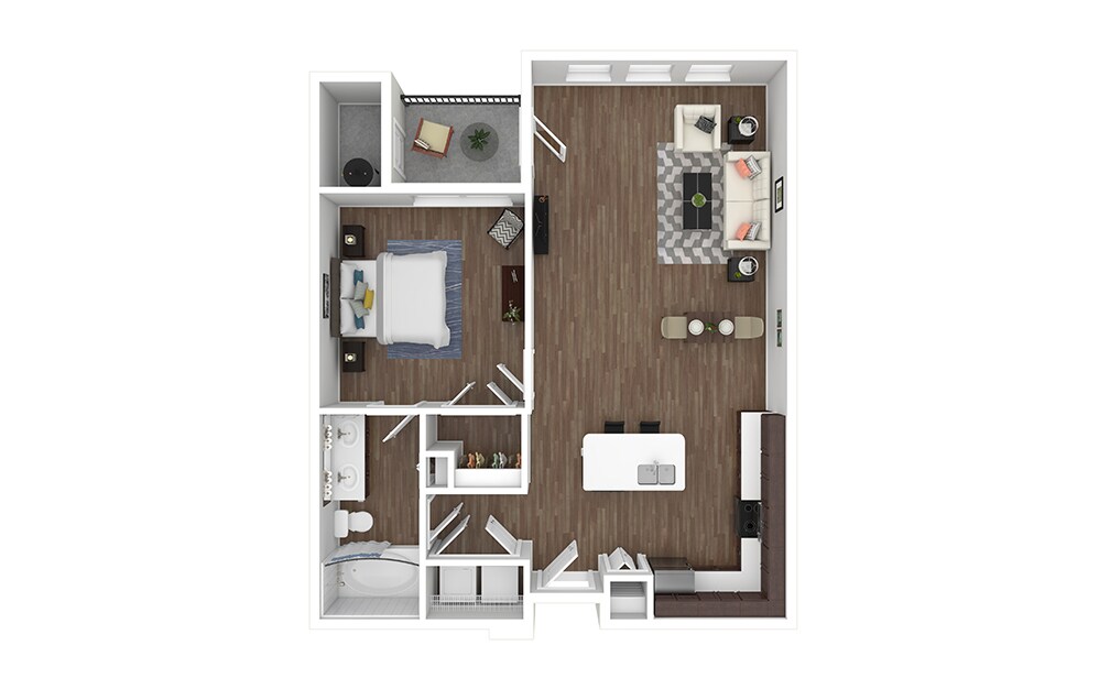 1 Dormitorio, 1 Baño, 729 pies²Disponible AhoraGalería del Modelo