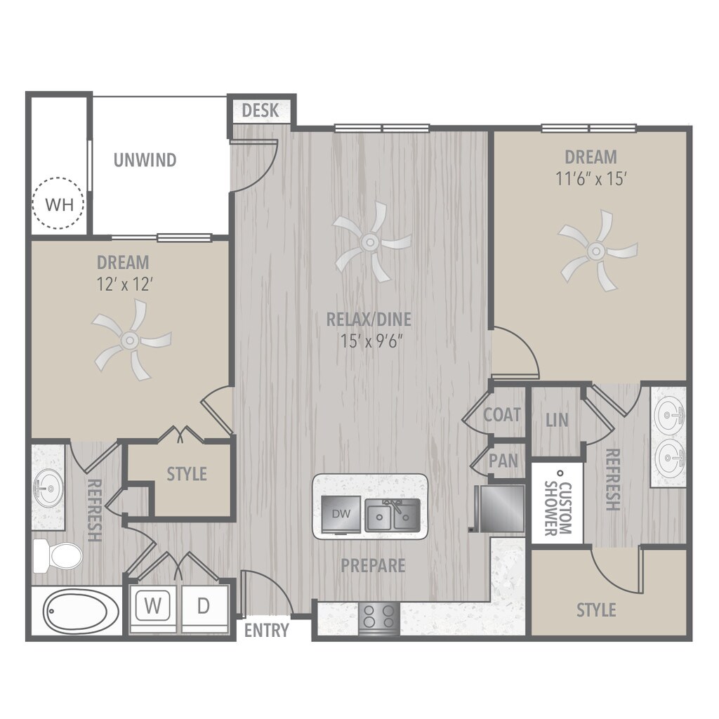 2 Dormitorios, 2 Baños, 1198 pies²Disponible AhoraGalería del Modelo