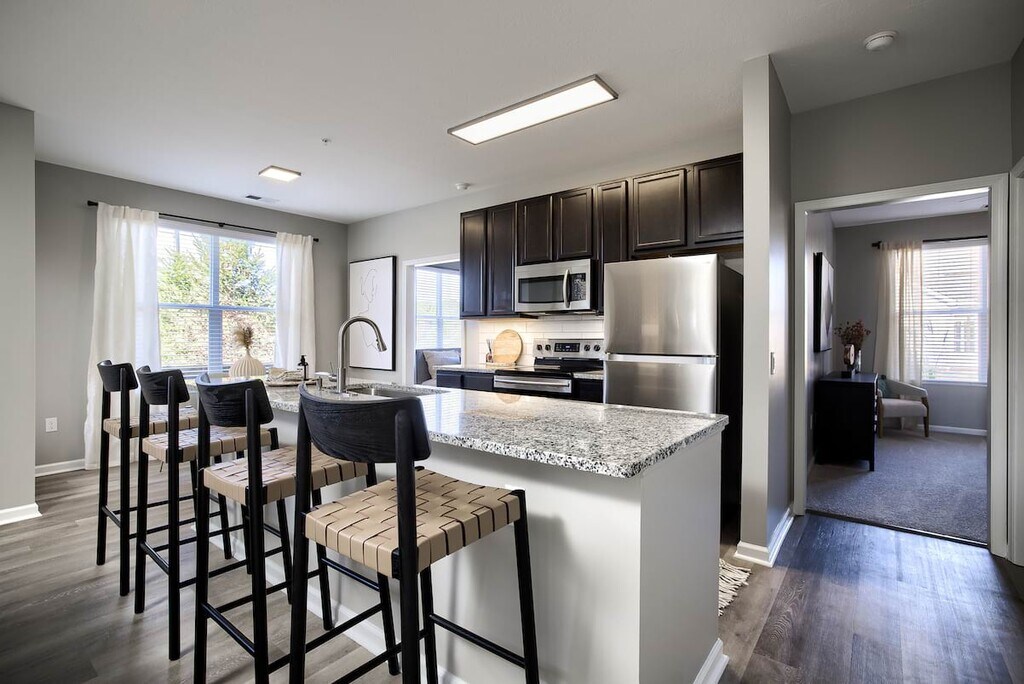 Located minutes away from Downtown Dublin, our community offers convenience to all the unique shops, restaurants, and recreation spots of Dublin, OH. Designer features like granite countertops and stainless steel appliances will make you proud to call any of our one and two-bedroom apartments home.Convenience to major employers like Cardinal Health and Sedgwick makes your everyday commute a breeze. And when you’re considering your weekend (or weeknight) plans, you have plenty of options nearby. Pasa un día soleado explorando todas las actividades al aire libre en Glacier Ridge Metro Park, disfruta de un poco de terapia de compras y come un bocadillo rápido en el Festival Centre, o júntate con amigos a disfrutar de cócteles artesanales y comidas irlandesas en Celtic Cocktail Trail. No importa cómo sea tu día, volverás a tu hogar a la recepción y el servicio de un equipo de complejo dedicado a ti.