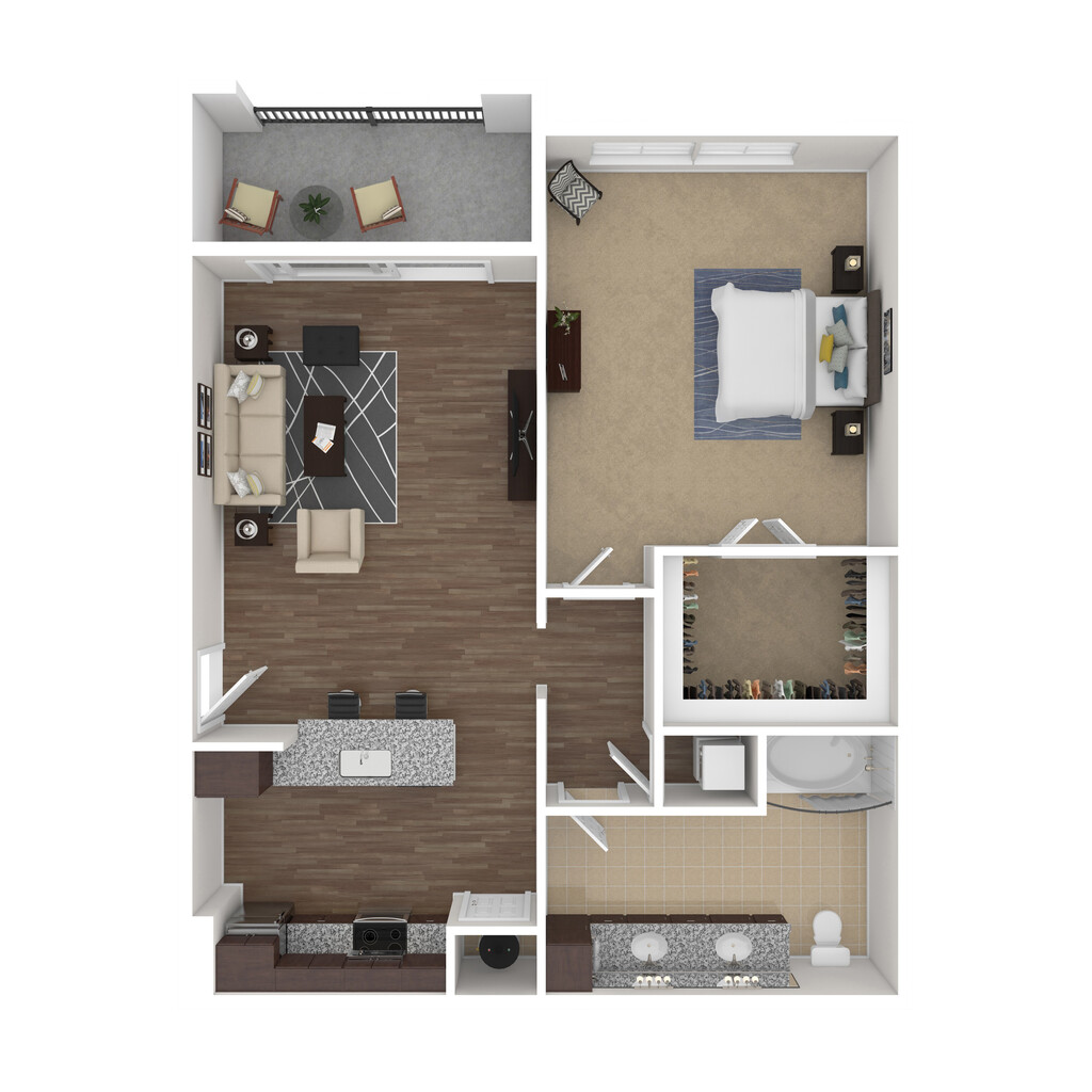 1 Dormitorio, 1 Baño, 800 pies²Disponible AhoraGalería del Modelo