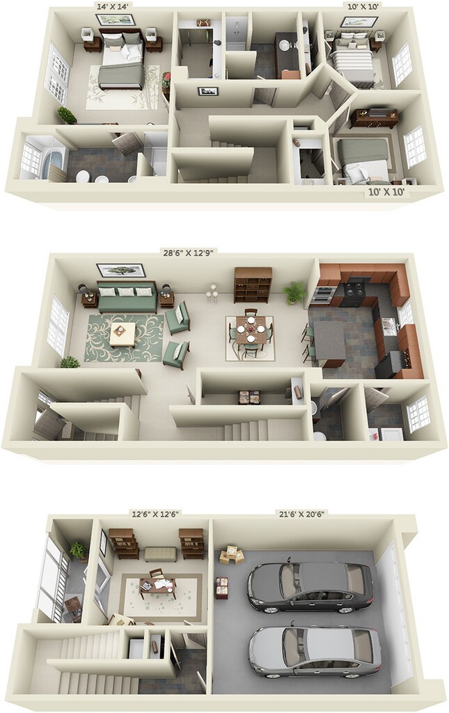 - 3-Story Townhomes Include Stainless Steel Appliances, Granite Slab Countertops, Private Garages and