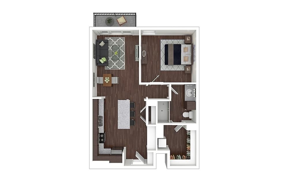 A7 - Plano 1 Unidad de apartamento: 619Modelo de apartamento: A71 Dormitorio, 1 Baño, 773 sq ftDisponible November 22, 2025![]()