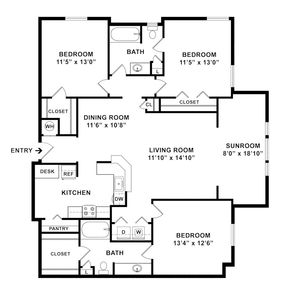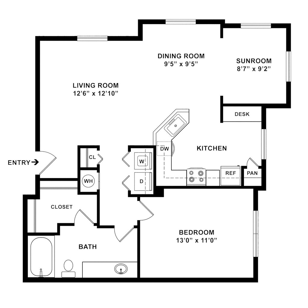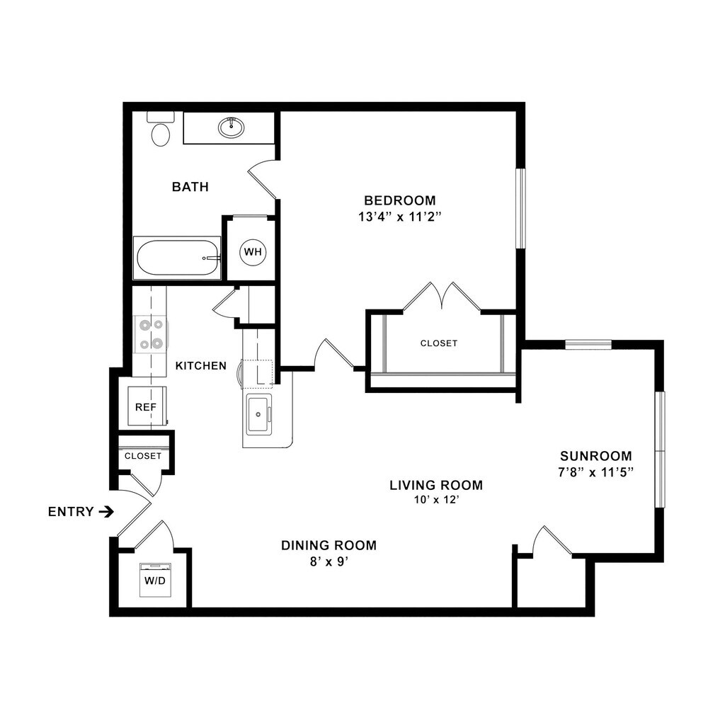Modelo de apartamento: Monticello with Sunroom1 Dormitorio, 1 Baño, 874 sq ftNo Disponible![]()