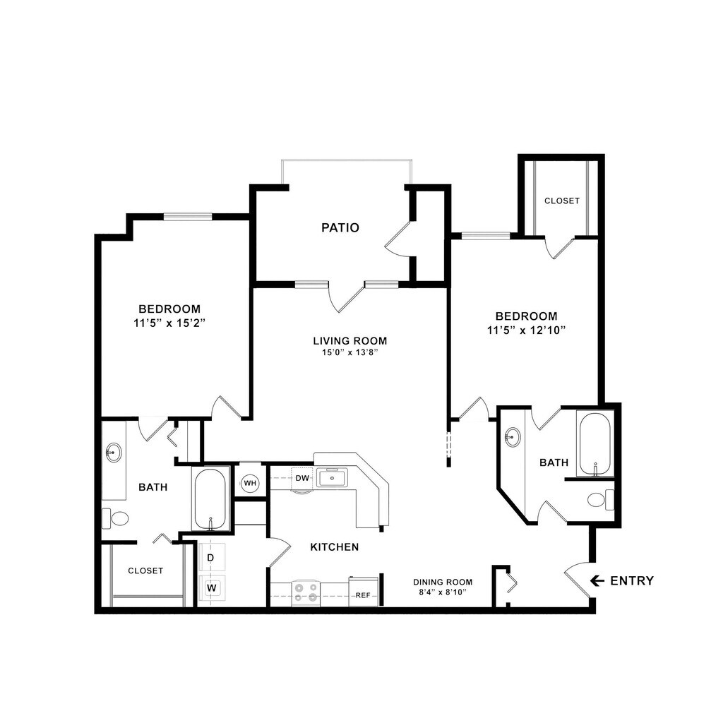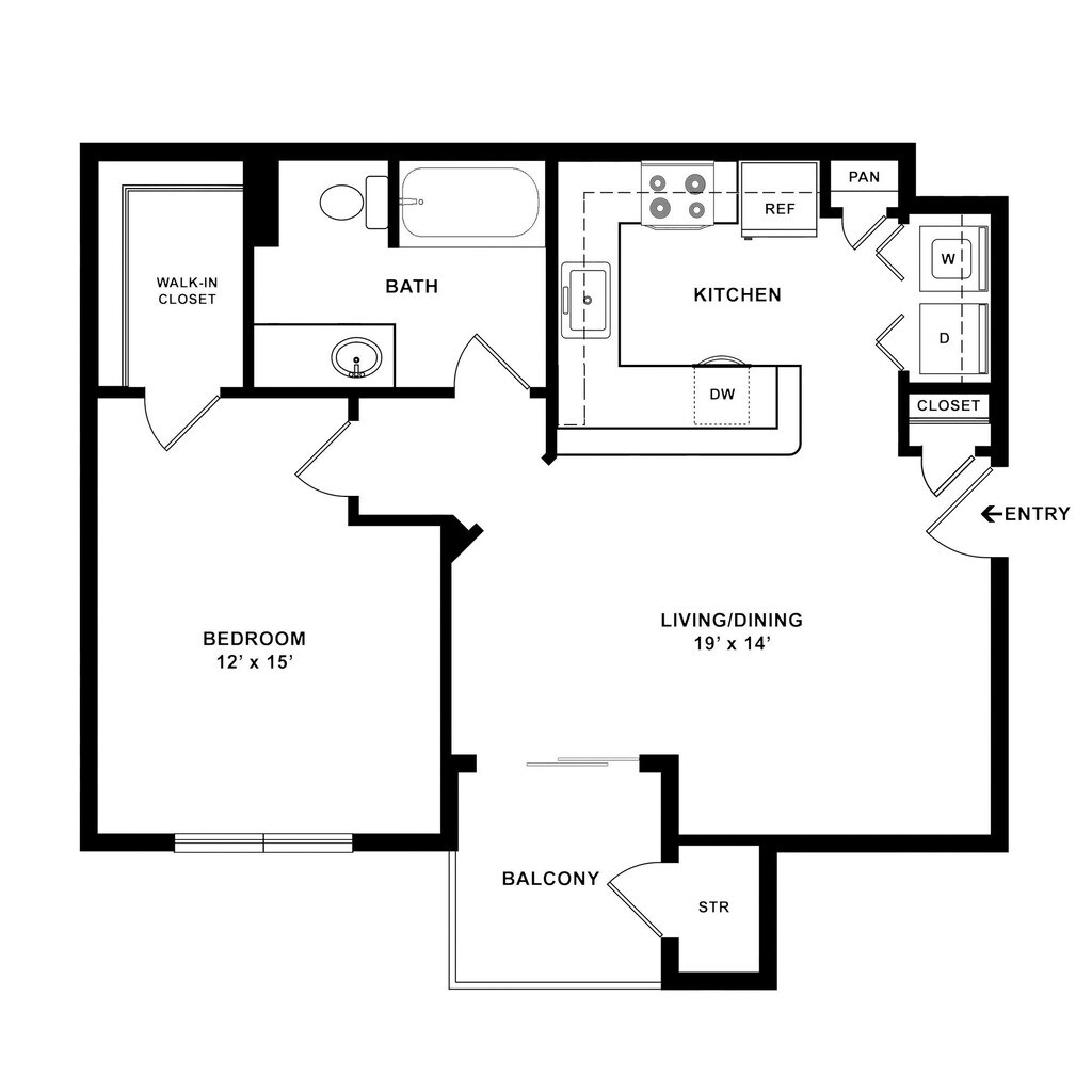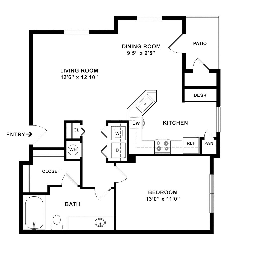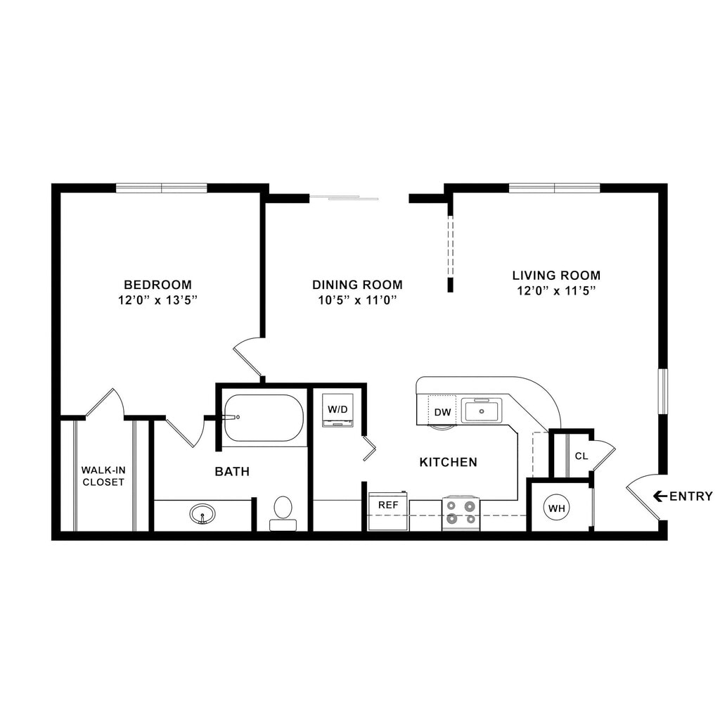 Modelo de apartamento: Houghton1 Dormitorio, 1 Baño, 756 sq ftNo Disponible![]()