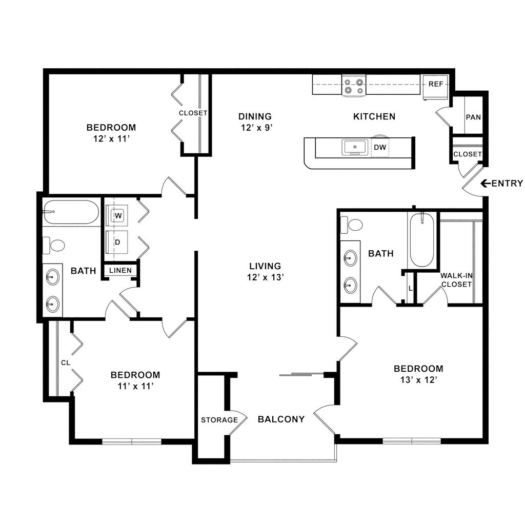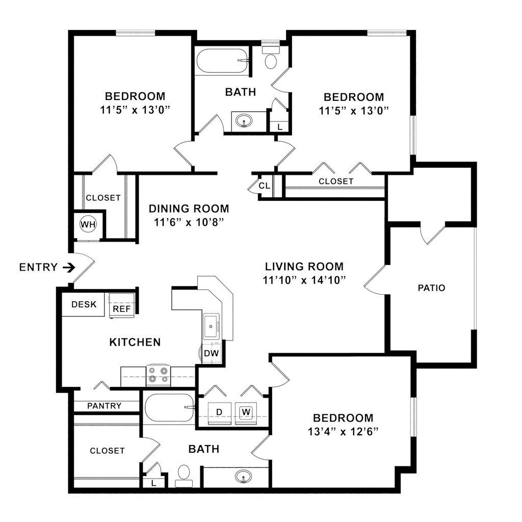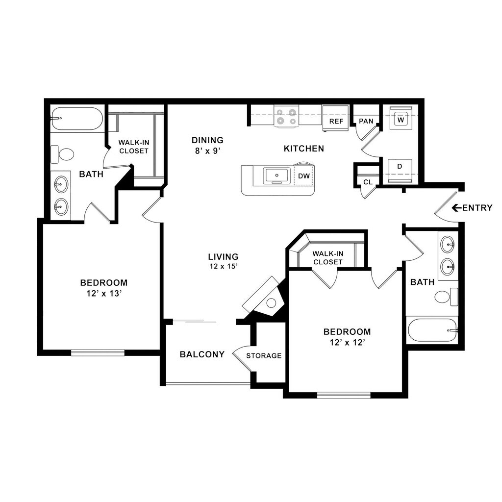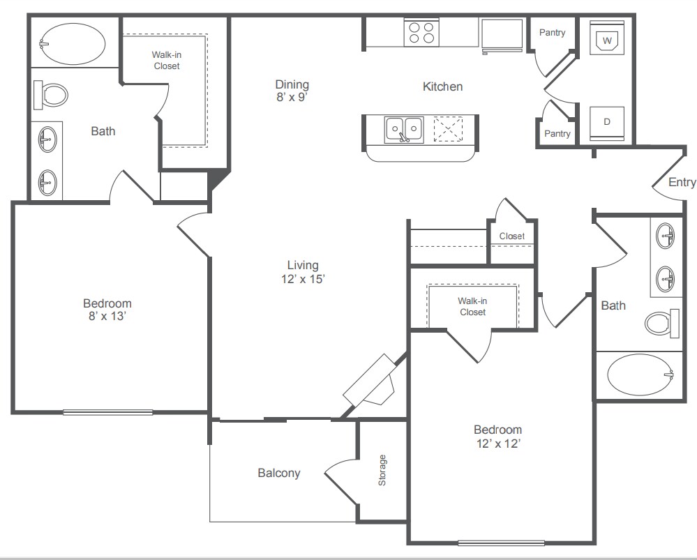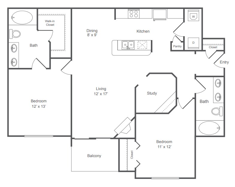 Modelo de apartamento: Houghton1 Dormitorio, 1 Baño, 756 sq ftNo Disponible![]()