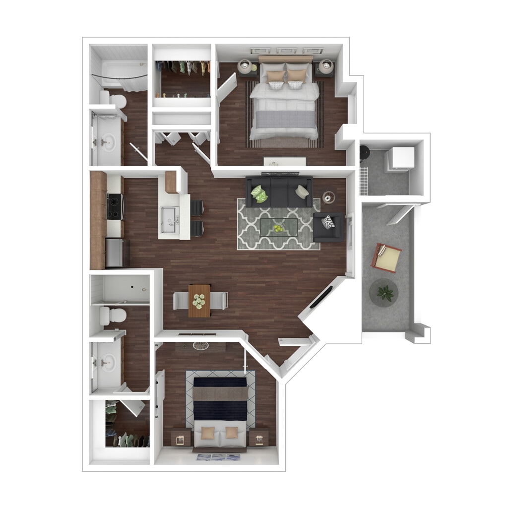 Modelo de apartamento: Sunrise2 Dormitorios, 2 Baños, 869 sq ftDisponible Ahora![]()