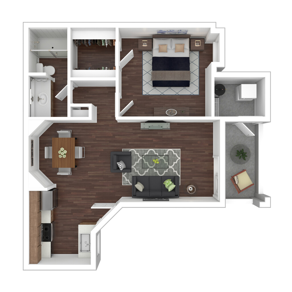 Modelo de apartamento: Quartz1 Dormitorio, 1 Baño, 668 sq ftDisponible Ahora![]()