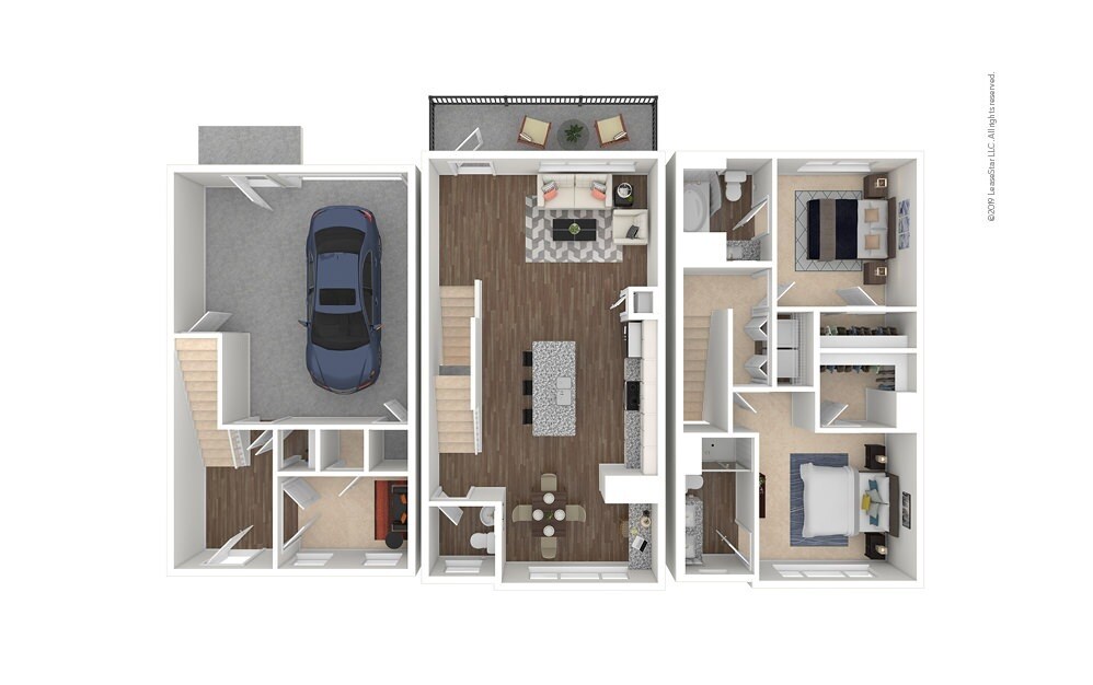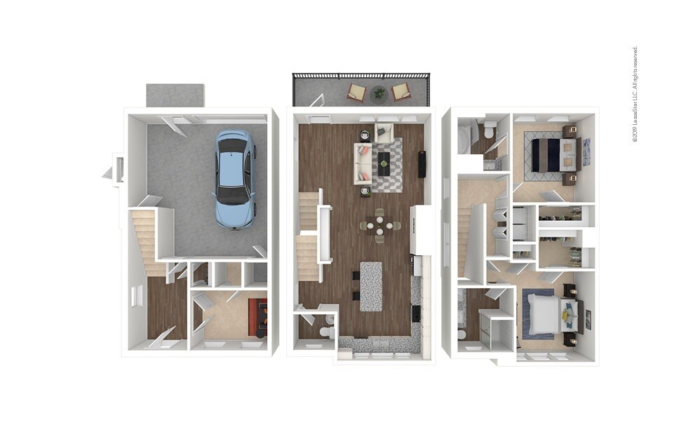 Modelo de apartamento: Birdie1 Dormitorio, 1 Baño, 761 sq ftDisponible Ahora![]()