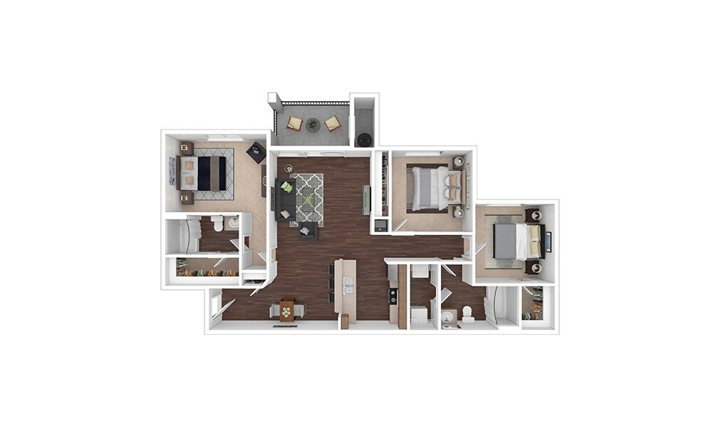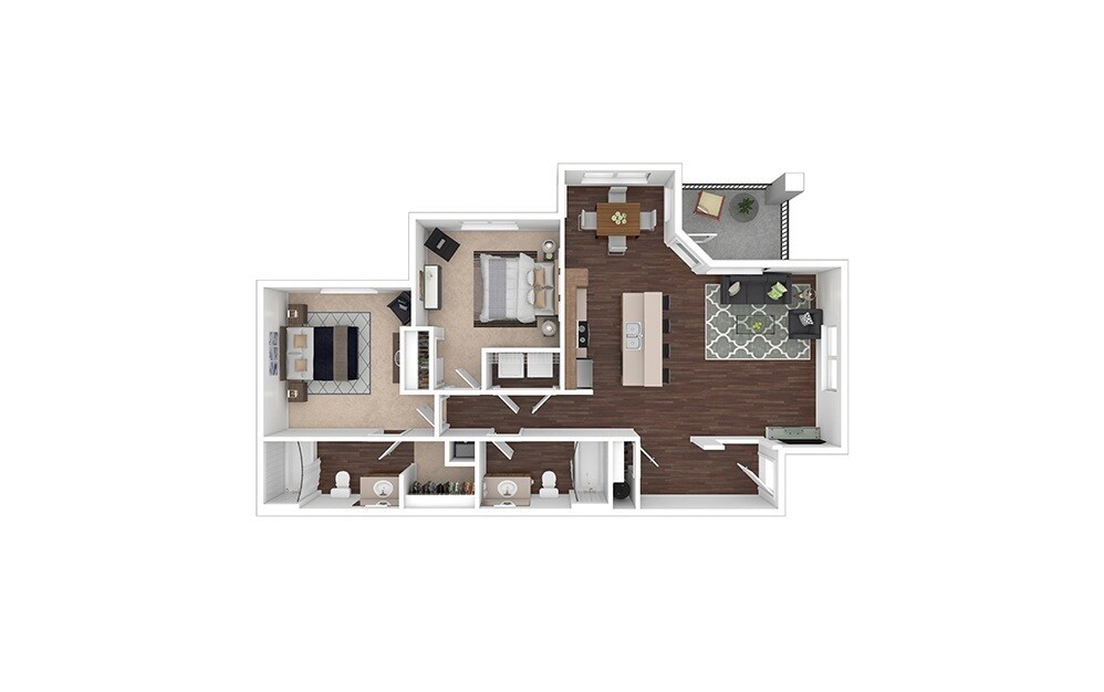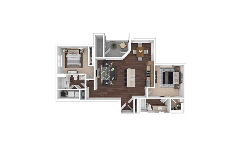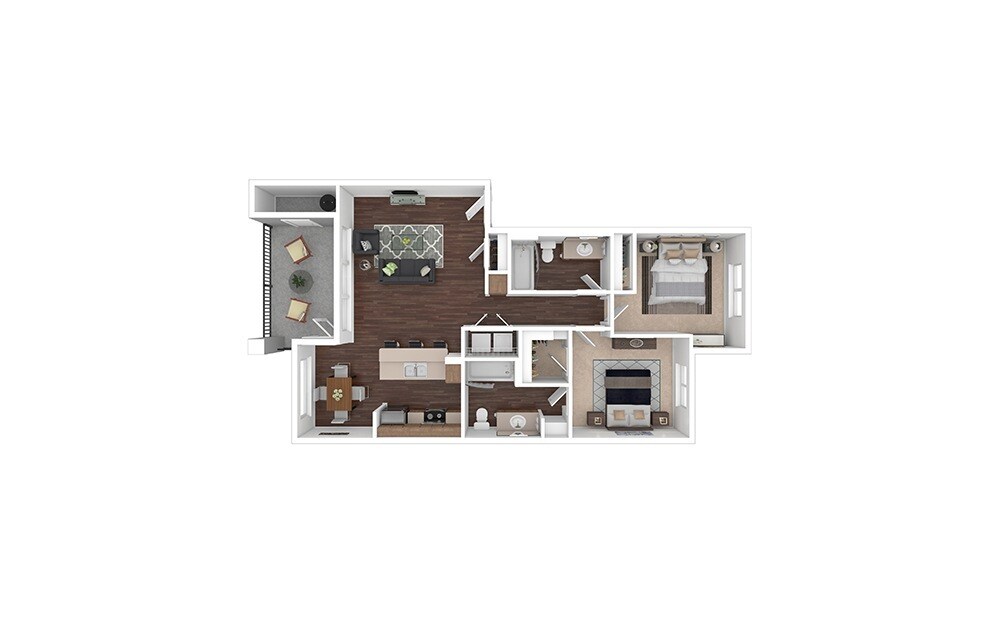 Modelo de apartamento: Cascade2 Dormitorios, 2 Baños, 968 sq ftDisponible Ahora![]()