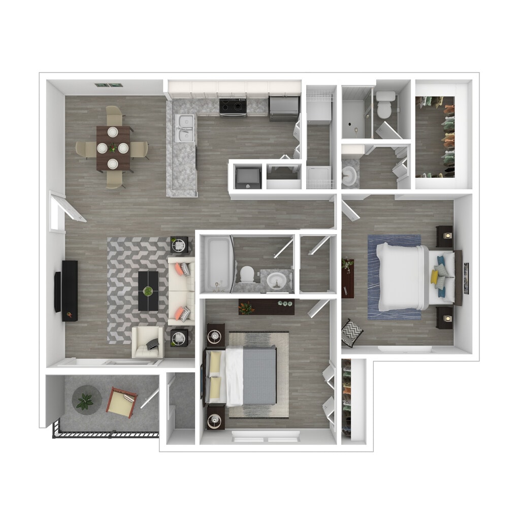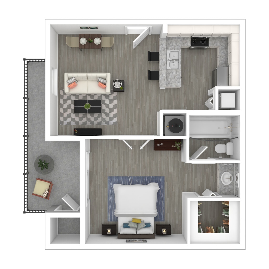 1 Dormitorio, 1 Baño, 850 pies²Disponible AhoraEl más grandeEsta opción tiene las unidades más grandes para este modeloGalería del Modelo