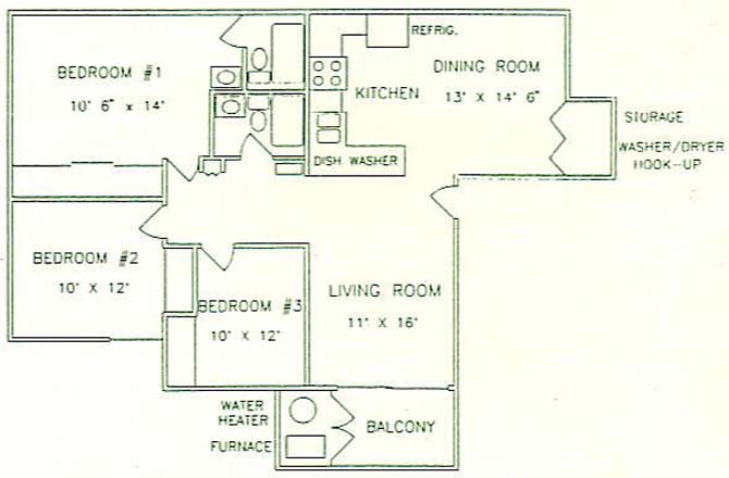 3 Bedroom - Plano 1 Unidad de apartamento: 81D203Modelo de apartamento: 3 Bedroom3 Dormitorios, 2 Baños, 835 sq ftDisponible Ahora